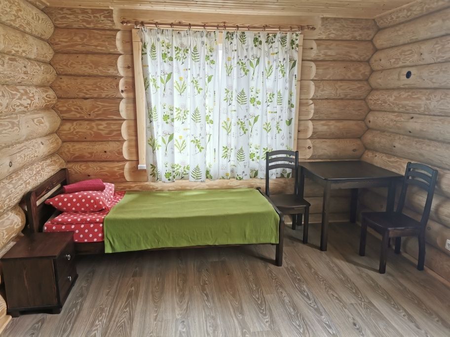 Одноэтажный двухместный коттедж. Состоит из одной спальни (с двумя односпальными кроватями), полатий с двумя односпальными местами (лежанка или деревянный настил, сооруженный под потолком коттеджа — идеальные дополнительные места для детей), туалета/душевой, холодной веранды для хранения спортивного инвентаря.