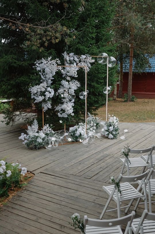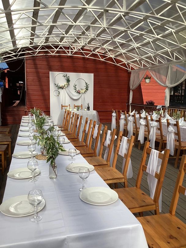 Спортивно-туристический комплекс «Малиновка» предлагает романтичную регистрацию брака на свежем воздухе, в живописном бору у реки Устья. Арка, украшенная цветами, придает событию особую атмосферу, а музыка и изысканный фуршет создают гармоничное и неторопливое оформление церемонии.