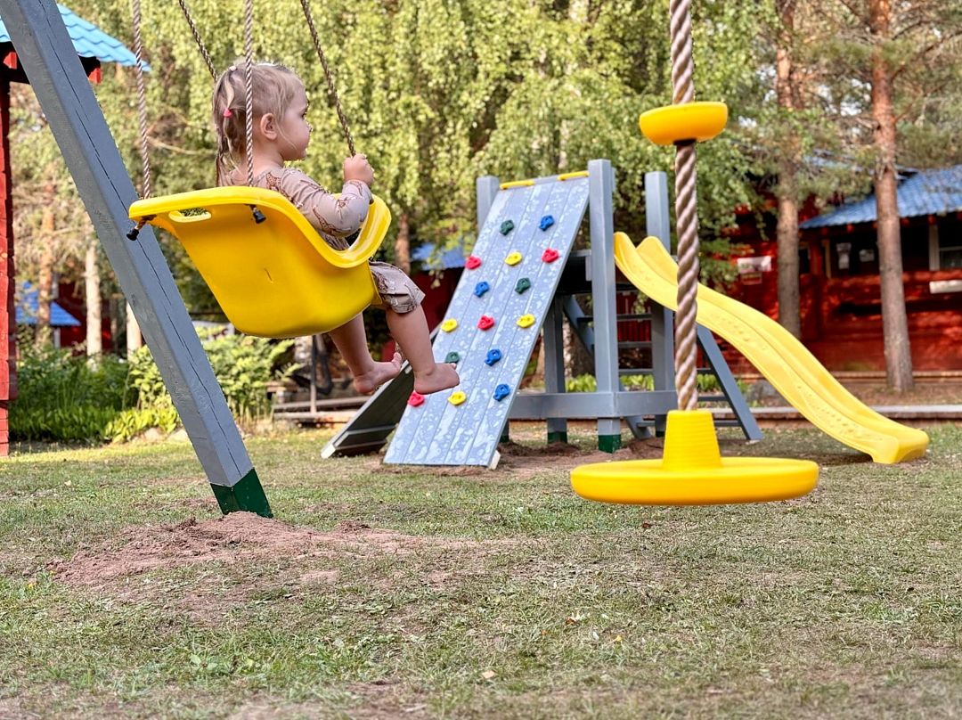 Особое внимание уделено семейному отдыху: дети играют на специально оборудованной площадке под присмотром родителей, которые могут расслабиться на летней веранде кафе с вкусной домашней выпечкой и детским меню. После насыщенного дня гостей ждет традиционная русская баня с ароматными березовыми вениками и возможность окунуться в прохладную реку — настоящий ритуал восстановления сил и единения с природой.