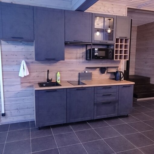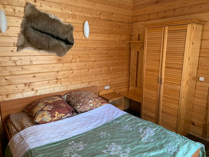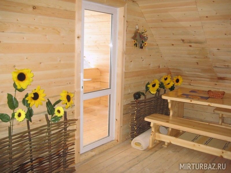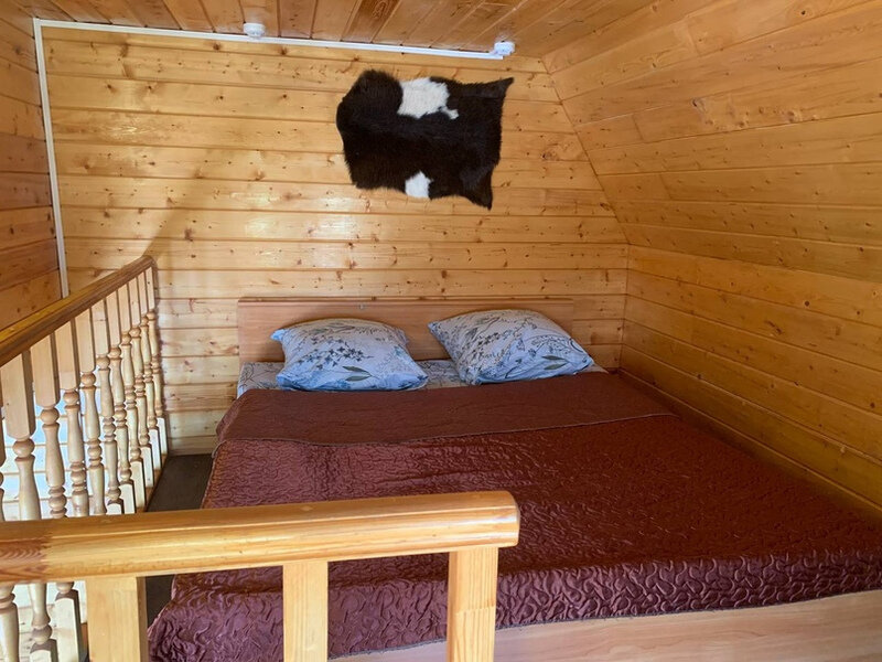 В домике гостиная+кухня, на 2 этаже 2 спальных места, лоджия. Душ, туалет, чайник, микроволновка, холодильник. В стоимость входит, посуда на 6 человек (тарелки, чашки, приборы), постельное белье. Мангал+6 шампуров.