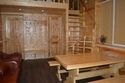 1 этаж: Гостиная - кухня (большой стол, стулья, кухня, ТВ, СВЧ-печь, чайник, холодильник, эл. плита)