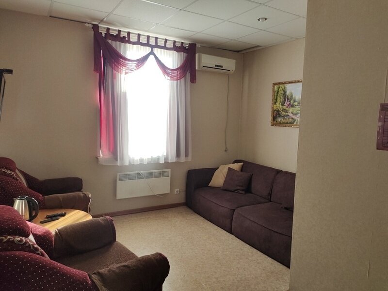 В номере 1 комната: 2х спальная кровать, 2 кресло-кровати для детей до 12 лет, Тв, чайник, микроволновка.Санузел. В стоимость входит постельное, 2 полотенца.