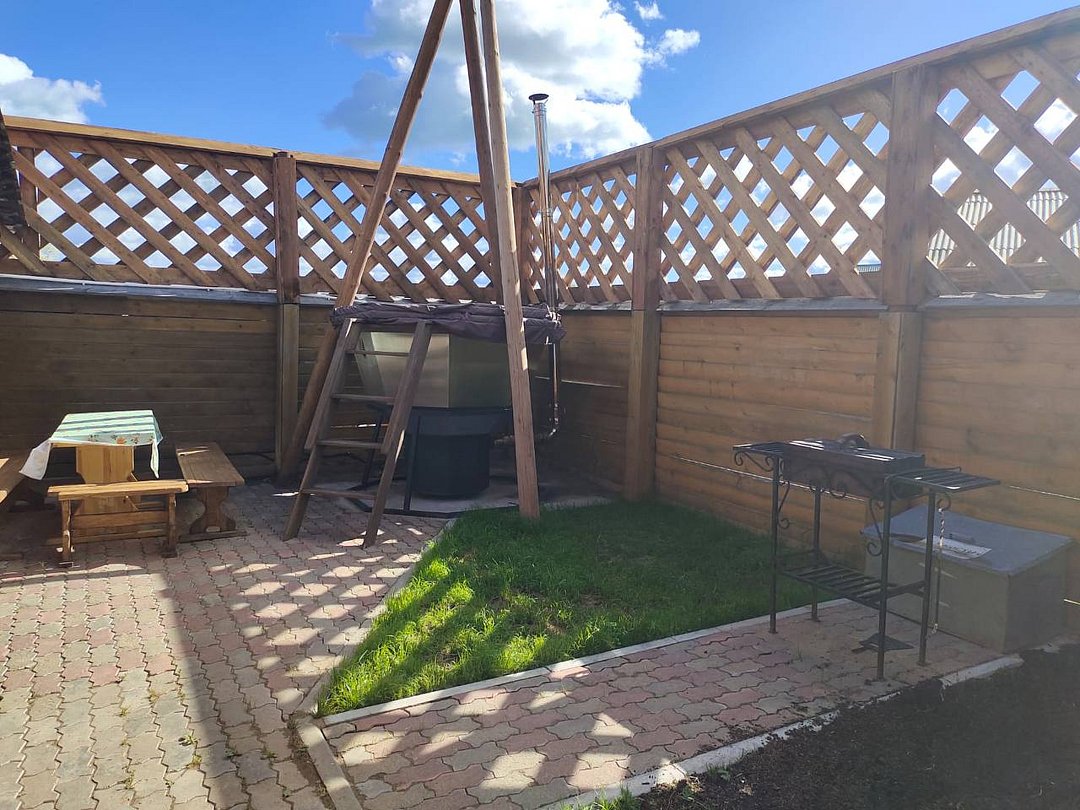 Температура воды в чане комфорта и зимой и летом. Вместимость до 8 человек.