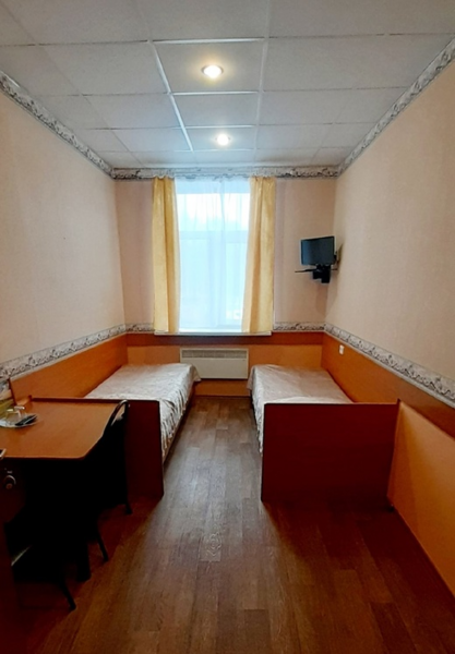 Отдельно стоящие кровати, стол, TV. Удобства на этаже.