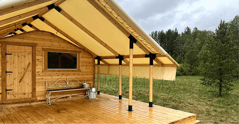 Комфортные условия проживания. Вы проживаете в палаточных 4-х местных домиках, где есть удобные кровати, столы, стулья, освещение и отопление. Рядом расположены столовая и баня, которую мы топим для вас каждый вечер. Туалет с септиком организован в стороне в отдельном модуле.