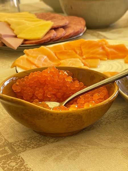 Разнообразное трёхразовое питание. Работают профессиональные повара, которые приготовят как обычные блюда, так и познакомят вас с поморской кухней. Вы можете заказать свое меню на каждый день. Также повара могут приготовить вкусный ужин из вашего улова.