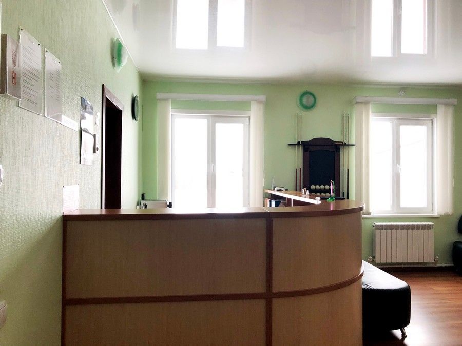 В холле ресепшен, два диванчика, бильярд. И беседка на территории.