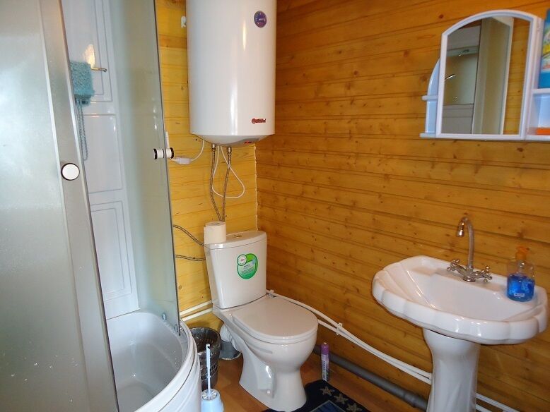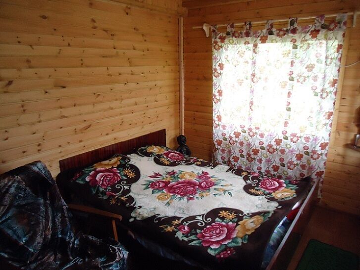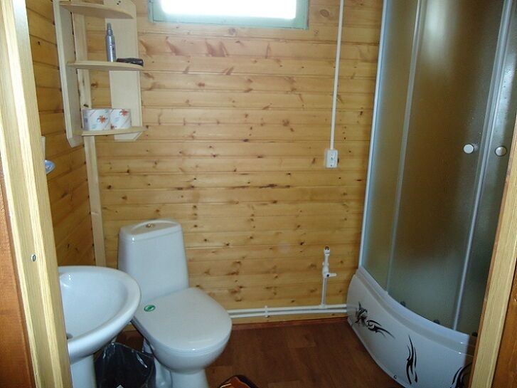 Номер в конце 2го корпуса с отдельным выходом в лес, своя веранда. В номере двуспальная кровать, тумбочки, вешалки, своя ванная комната (душевая кабинка, раковина, туалет), имеется общая кухня (холодильник, чайник, микроволновка, посуда).