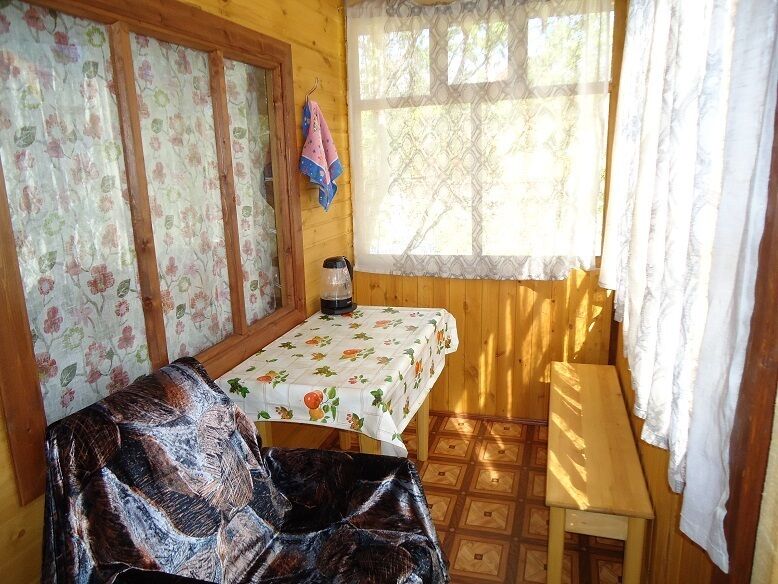 Номера эконом класса, в номере кровати, тумбочки, вешалки, на блок из 3-х номеров ванная комната (душевая кабинка, раковина, туалет), имеется общая кухня (холодильник, чайник, микроволновка, посуда), веранда