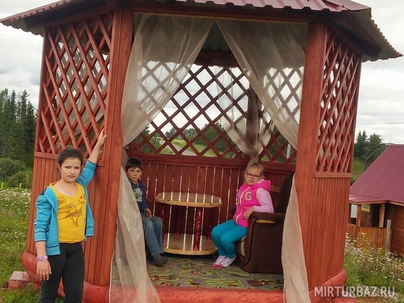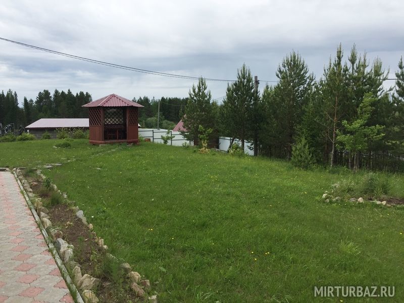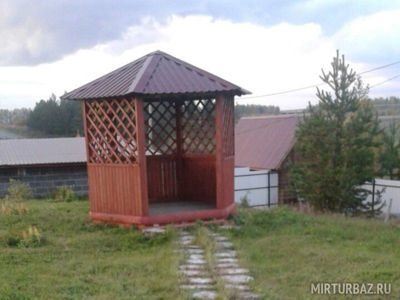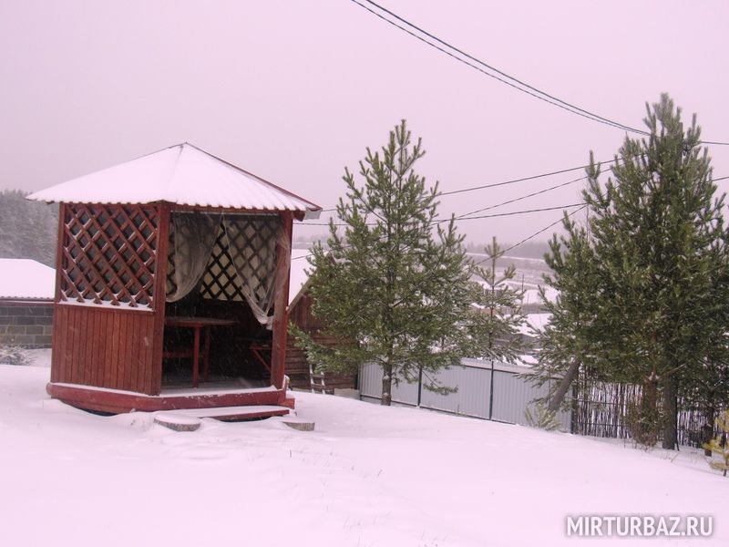 По территории базы рассредоточено несколько беседок, от небольшой деревянной, до капитальной кирпичной.