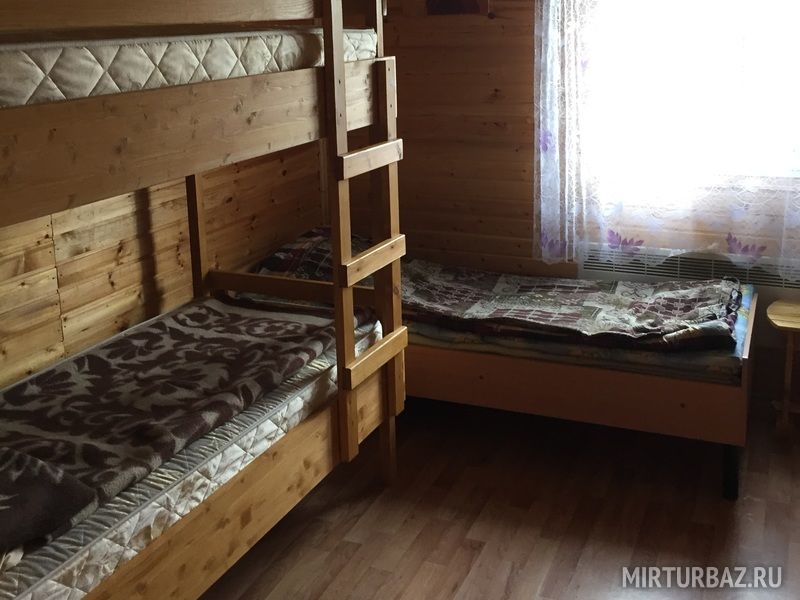 Для размещения с ночевкой предлагается благоустроенный деревянный коттедж с раздельными спальными комнатами и кухней. В доме спутниковое телевидение, туалет, душевая кабина с горячей и холодной водой, стиральная машина. Проживающие в номерах коттеджа могут пользоваться кухней с холодильником и плитой. У всех гостей базы есть возможность приготовления еды на мангале самостоятельно.