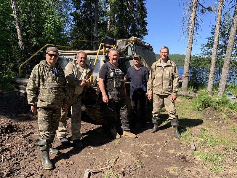 Вокруг тайга. Прям совсем тайга. Посмотришь налево — то самое озерцо, где сидит Алёнушка Васнецова. Взглянешь направо — куропатка выпархивает из-за мохнатой ели, а во мху мелькает хвост кролика. Главное ещё посматривать прямо, чтобы в лицо не прилетела лапа ели, потому что едешь ты на крыше вездехода.