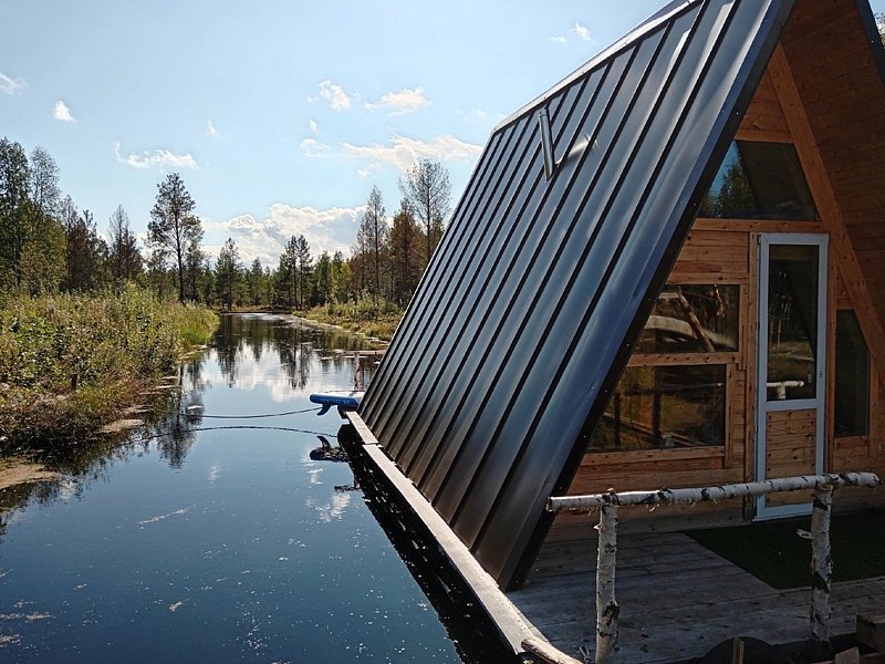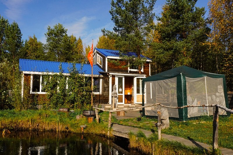 Домик, расположен в лесу у самого края пруда. На солнечной стороне, расположена небольшая терраса — идеальное место для утреннего кофе или вечернего отдыха.