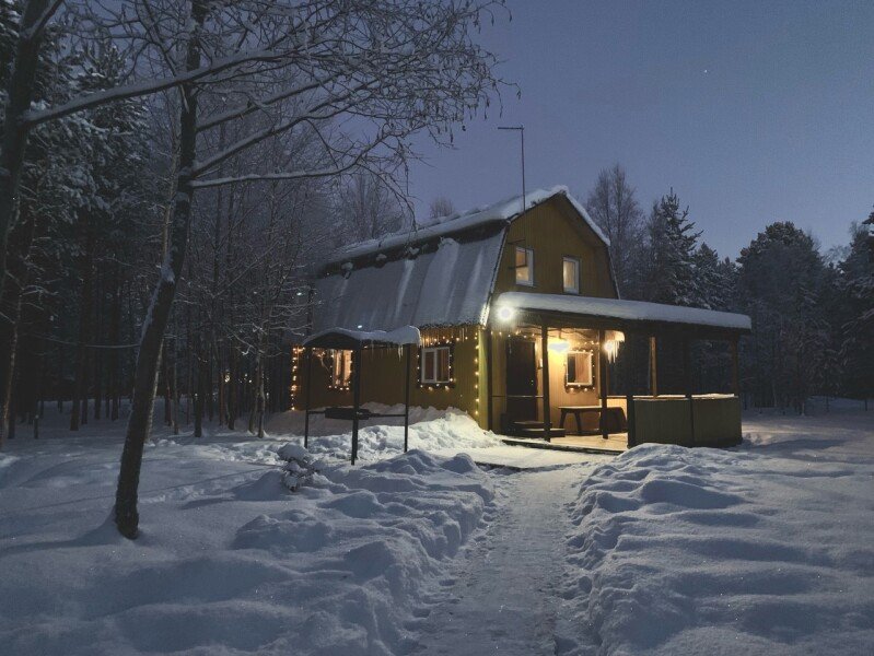 База отдыха приглашает отдохнуть на природной локации в тихом уютном месте для отпуска или выходных в любое время года. Домик станет комфортной локацией для пары, небольшой компании друзей или семьи с детьми до шести человек.