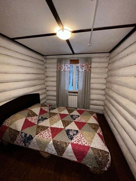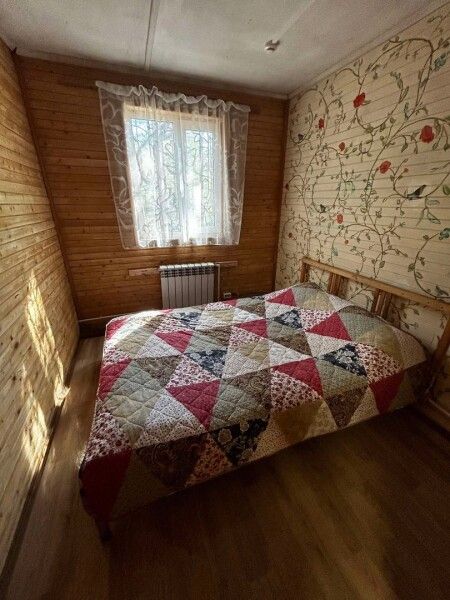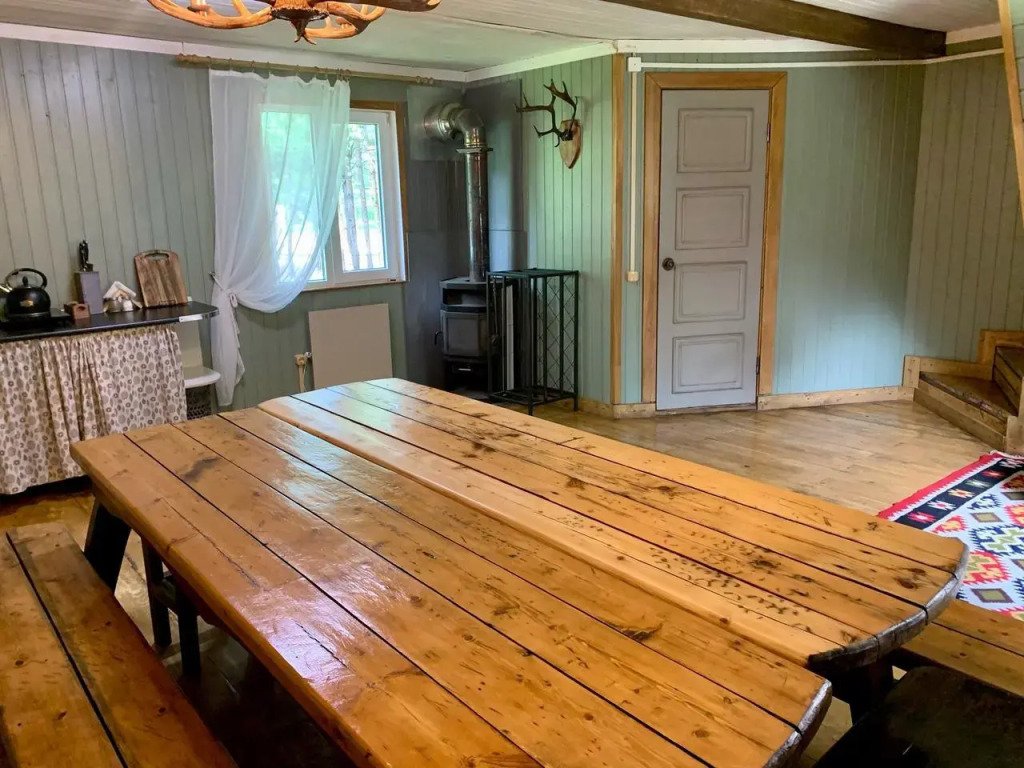 Первый этаж: гостиная с дровяным камином, кухня со всей необходимой техникой, посудой и питьевой водой, санузел (душа нет, есть баня), в столовой зоне вместительный стол до двадцати мест, три спальни. В каждой одна двуспальная кровать (постельное белье).