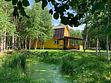 Коттедж «Русская усадьба» — это большой шестикомнатный уютный дом из круглого бревна, который расположен на базе отдыха в лесной чаще, вдоль которой протекает река.