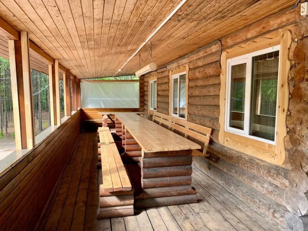 С террасы дома, оборудованной мебелью для отдыха, открывается панорамный вид на лес. Место очень атмосферное! На территории расположена деревянная качель, зона отдыха (мангал, шампура, костровая чаша, кресла для отдыха, стол и лавки), парковка для двух машин.