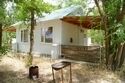 В кемпинге две комнаты с разборными диванами-кроватями, чайник, холодильник, плита и раковина. К кемпингу примыкает открытая терасса с пластиковой мебелью. Туалет и душ (с холодной и горячей водой) расположены в отдельном помещении рядом с кемпингом.