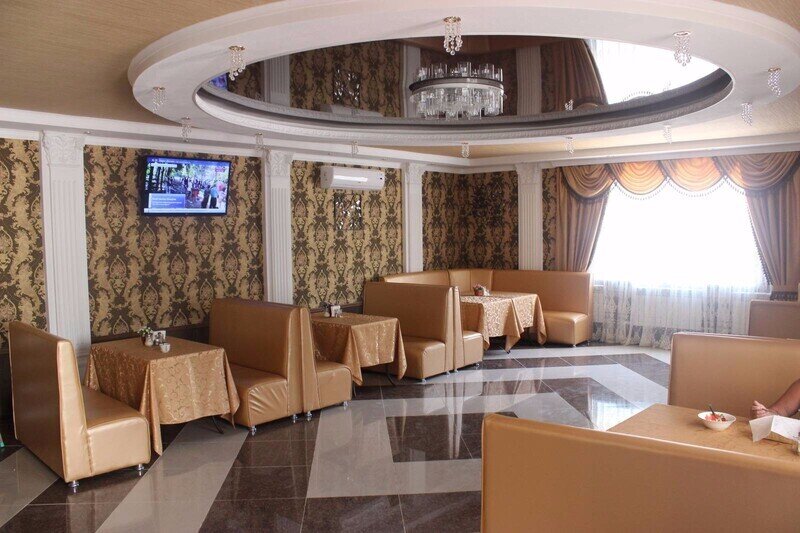Кафе расположено на первом этаже здания гостиницы «Алмаз».