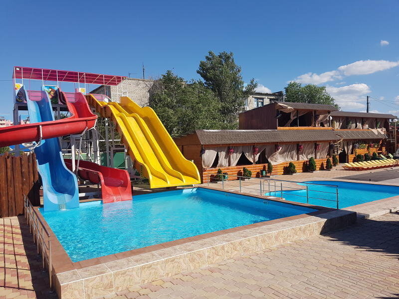 Тип бассейна: открытый бассейнРядом с бассейном: шезлонги, зонтикиВремя работы: от 10:00 до 23:00Аквапарк