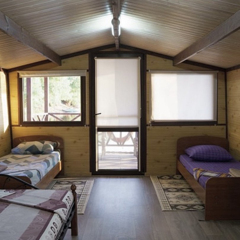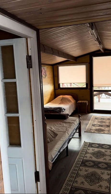 - в комнате 2: двуспальная кровать и 2 односпальные кровати.