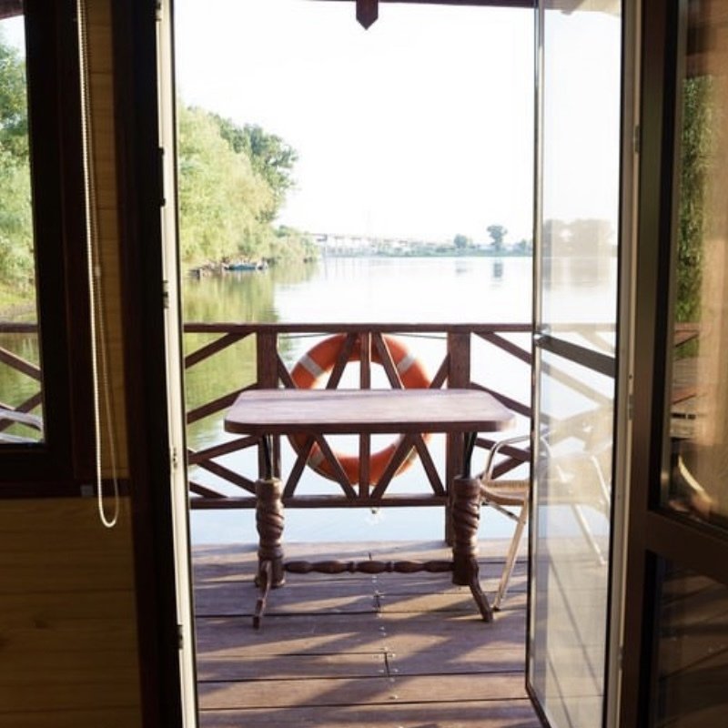 Уютный домик на воде с видом на реку имеет 2 комнаты: