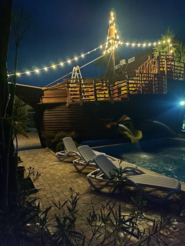 К вашим услугам: банный комплекс с караоке, бассейн с водными горками, шезлонги, детская площадка, зоны отдыха, спортивная площадка, охраняемая автостоянка с видеонаблюдением, мангальная зона с коптильней и Wi-Fi.