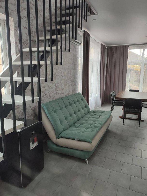Большой зал на первом этаже, 3 отдельных спальни на втором этаже.