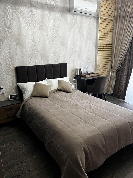 Номер с двухместной кроватью, оснащен собственной душевой кабиной и санузлом.