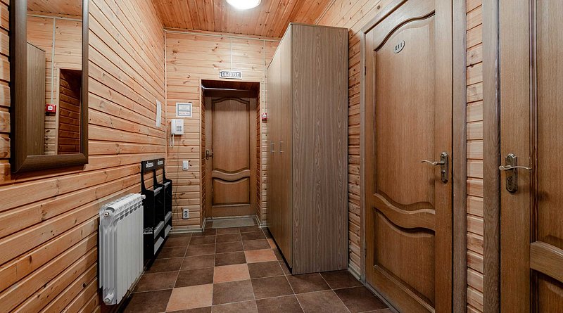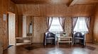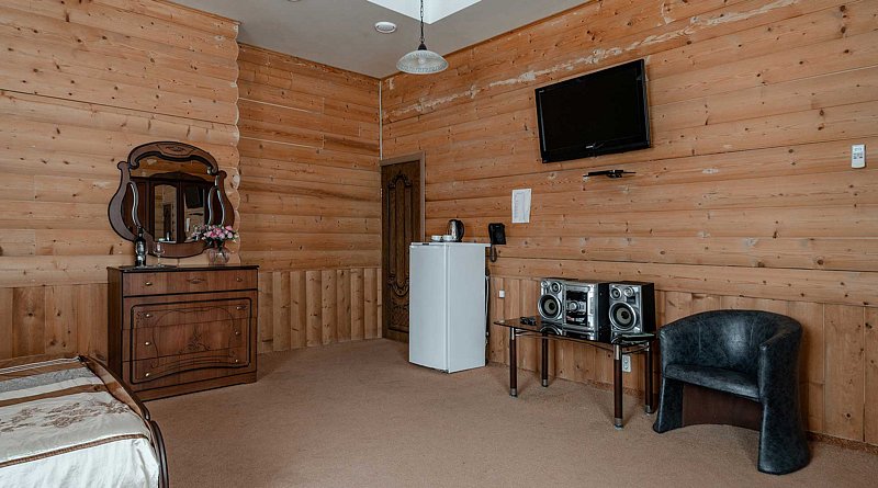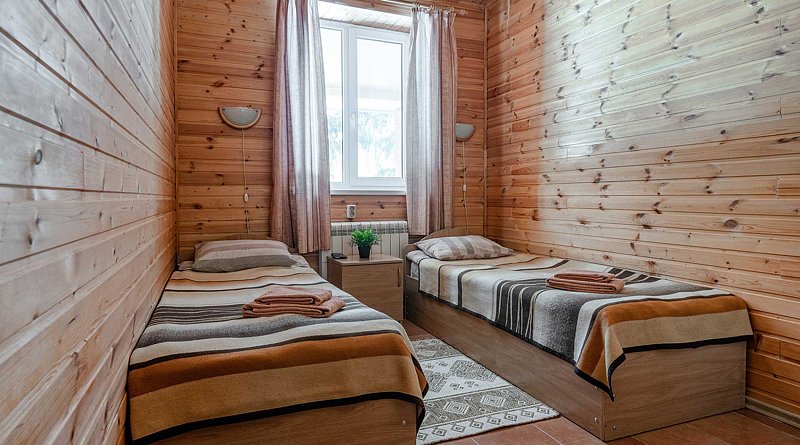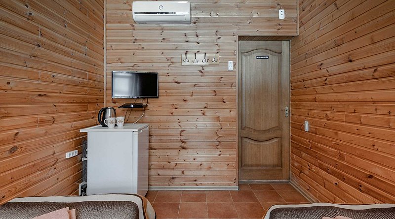 Номер блочного типа. В одном блоке два двухместных номера. На два номера общие санузел с душевой кабиной, коридор, морозильная камера для улова, подставка под удилища, внутренний телефон, вход и открытая веранда.