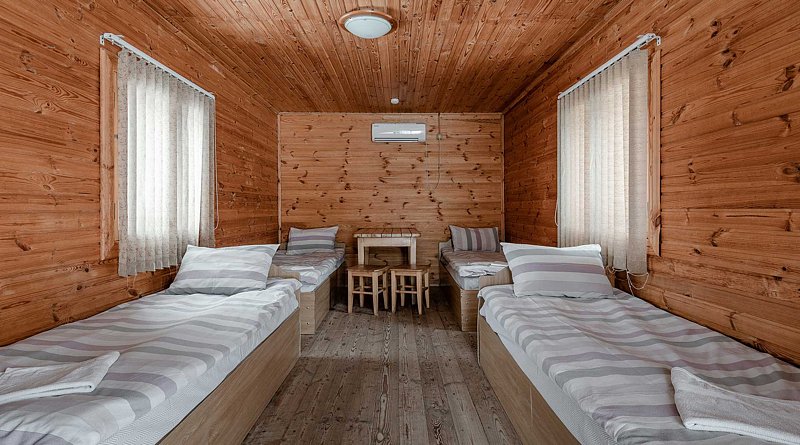 Туристический домик рассчитан на компанию из 4 человек, меблирован (при заезде выдаются комплекты чистого постельного белья).