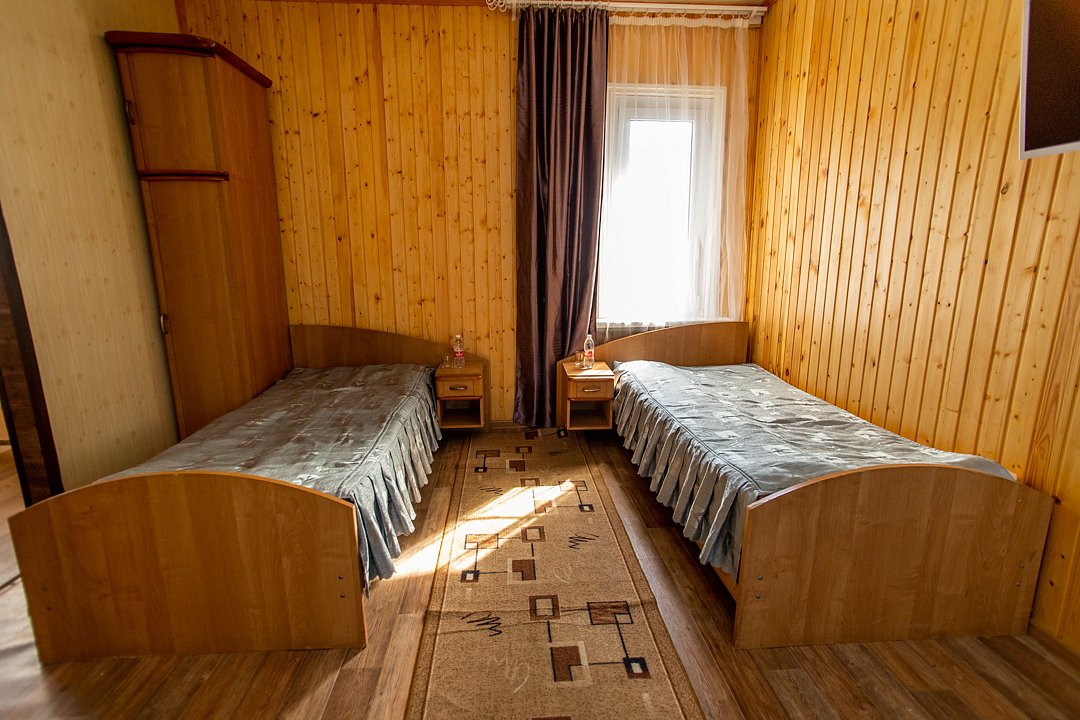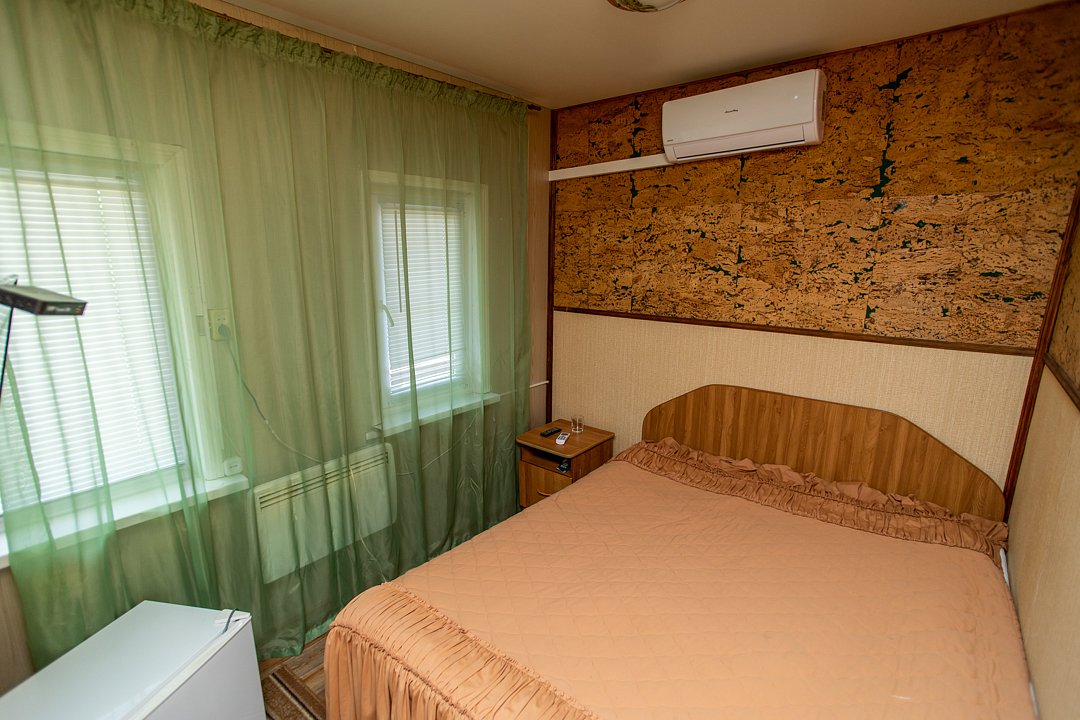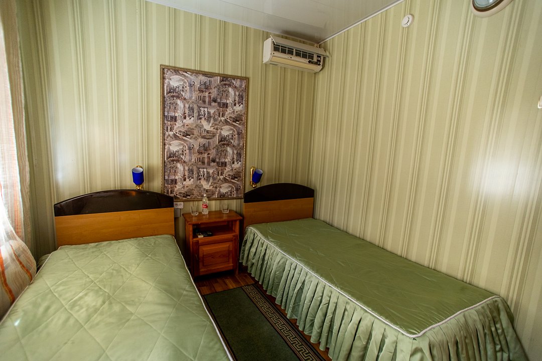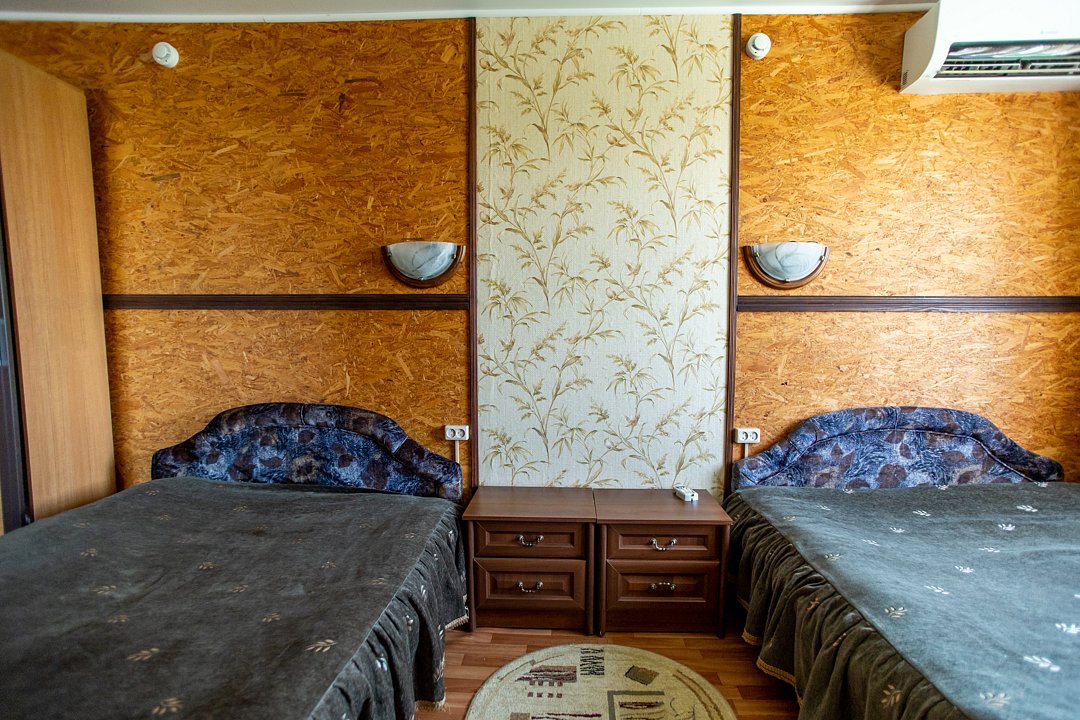 В номере две односпальные кровати, индивидуальный санузел, сплит-система/кондиционер. Номер оснащен холодильником, телевизором. Идеально для рыболовно-охотничьего тура. В стоимость входит проживание, трехразовое питание, водный трансфер, услуги егеря с моторной лодкой (при размещении в лодке 2-3 человека).
