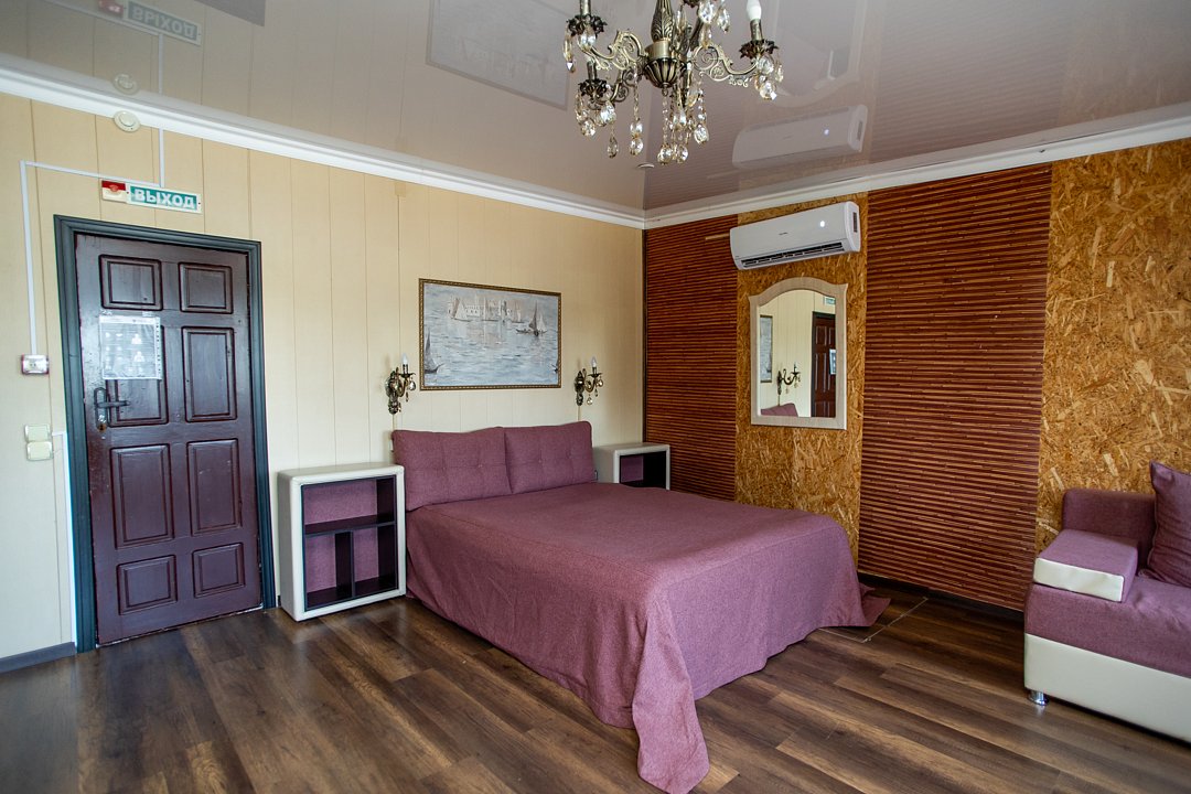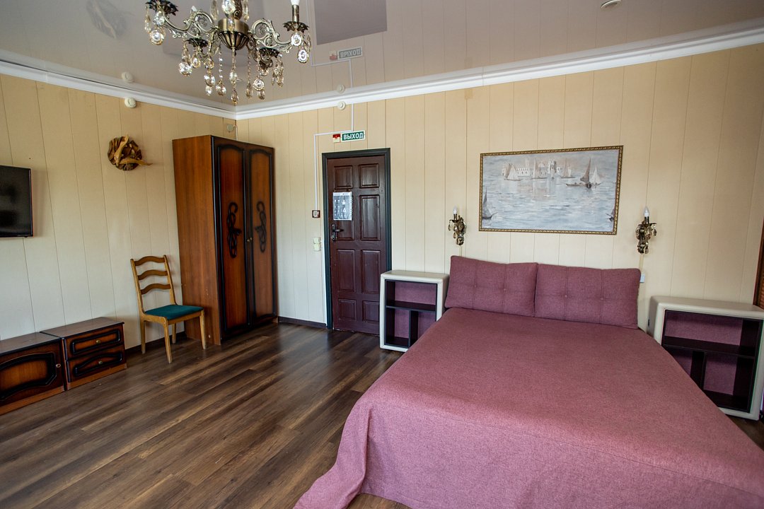 На базе есть всё для комфортного отдыха. Имеются номера различной вместимости и категории, которые варьируются от эконома до люкса. В них есть вся необходимая мебель и техника, чтобы отдыхающие чувствовали себя максимально комфортно. В ванной комнате установлен стандартный набор сантехники, прилагаются свежие полотенца.