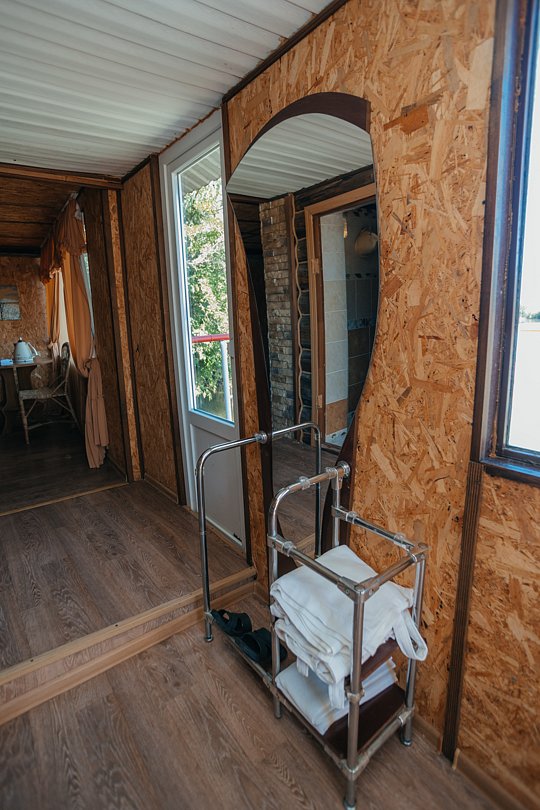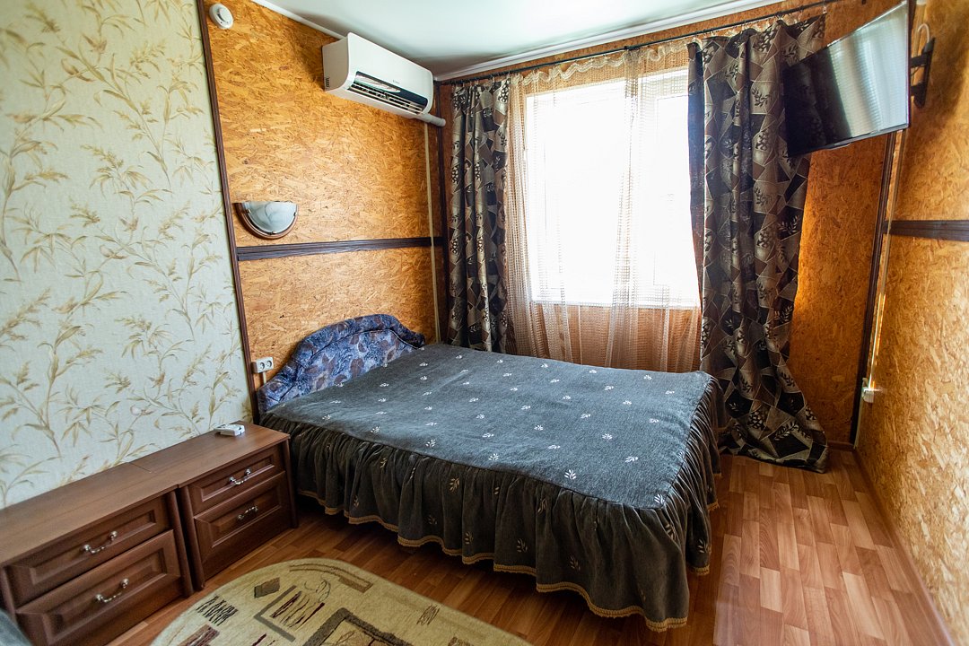 В номере индивидуальный санузел, сплит-система/кондиционер. Номер оснащен холодильником, телевизором. Идеально для рыболовно-охотничьего тура. В стоимость входит проживание, трехразовое питание, водный трансфер, услуги егеря с моторной лодкой (при размещении в лодке 2-3 человека).