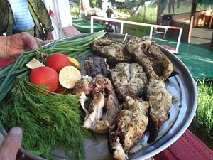На базе «Карай» туристов ждёт превосходное трёхразовое питание в уютной и просторной столовой, где шеф-повар будет потчевать своими кулинарными изысками — ухой по-астрахански, сазаном под маринадом, рыбными пирогами, люля из сазана и ещё многими-многими волжскими деликатесами…