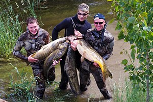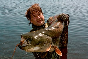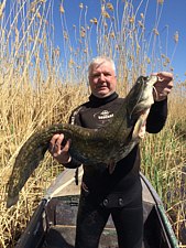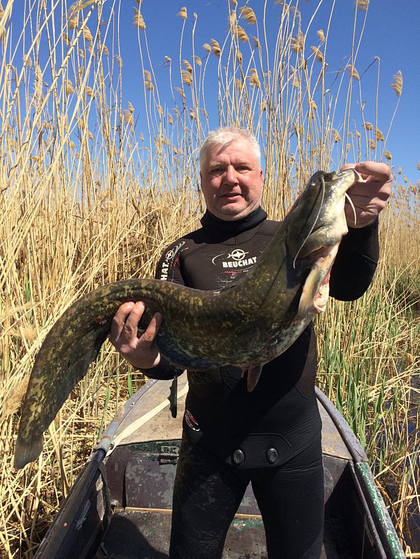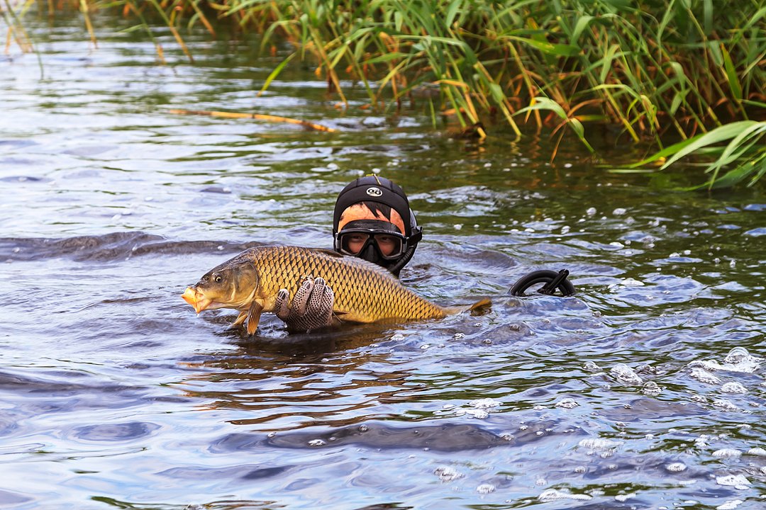 Самые отличные для подводной охоты на раскатах — это места, где заканчиваются заросли камыша и начинается чистая вода, и глубины до 2, 5 метров очень удобны для этой особенной и увлекательной охоты на сома, сазана, линя — желанные рыбацкие трофеи.