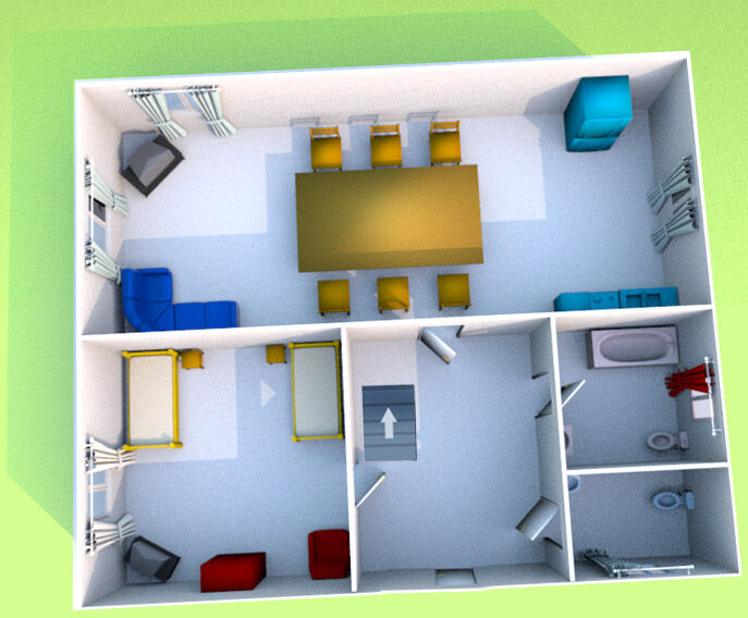 2 двухместные спальни,комната отдыха, ванная комната с душевой кабиной и санузлом, отдельный санузел, холодильник. Каждый номер и комната оборудованы сплит-системой, ЖК-телевизором 32” со спутниковым TV, индивидуальным отоплением.