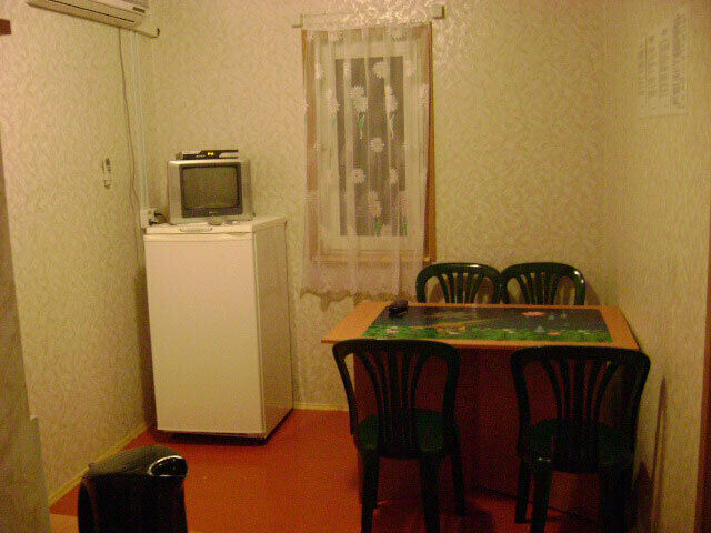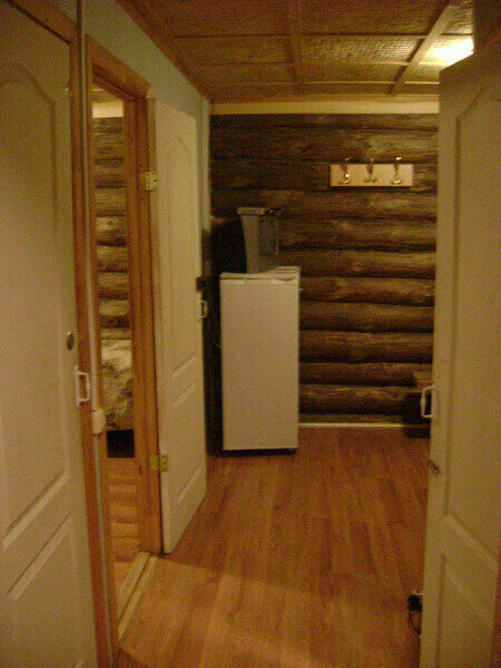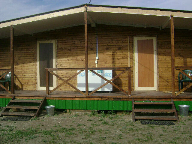 Дома рубленные и щитовые разделены на две половины. В каждой – по две двухместные спальни, туалет, душ, умывальник и кухня-гостиная. В каждой половине есть сплит-система, холодильник, спутниковое TV, электроплита, электрочайник, набор посуды, мойка, горячая и холодная вода. На верандах установлены морозильные лари для сохранения улова.