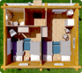 Расположены 2 отдельно стоящих одноэтажных дома на 4 человека.
