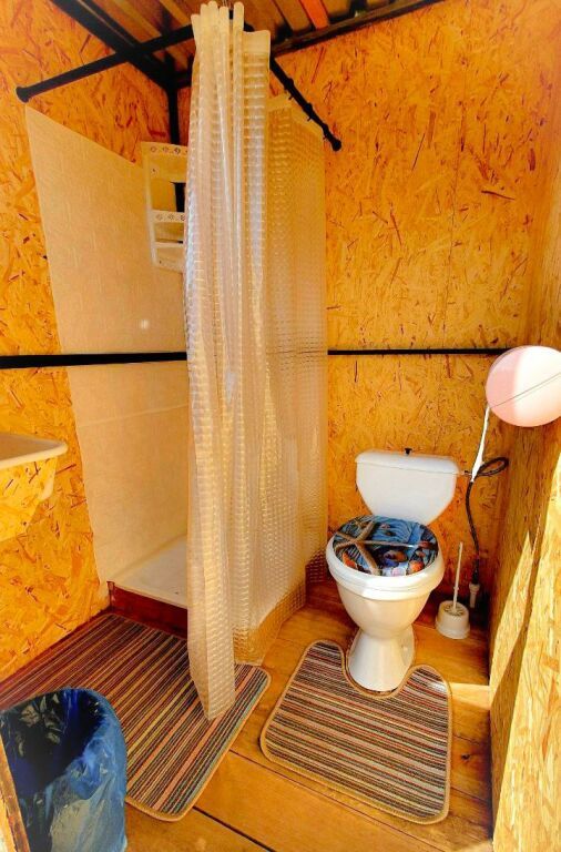 Туалет и душ с горячей водой (у каждого домика свой, на улице в шаговой доступности).