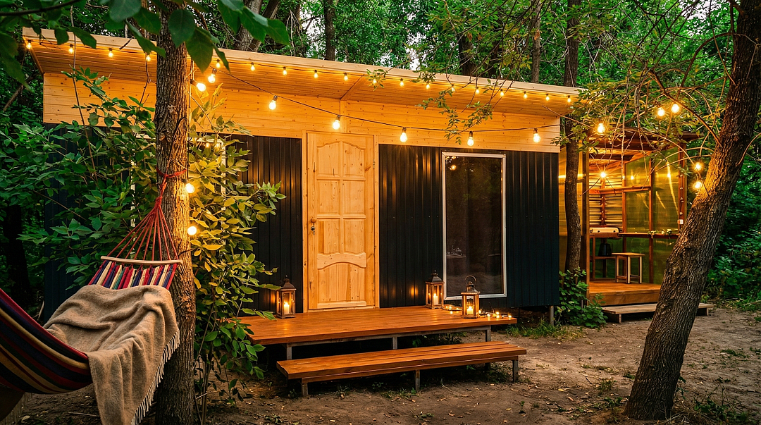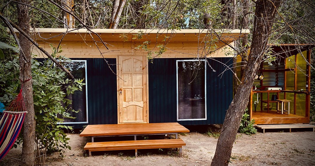 Утепленный глэмпинговый домик с отоплением и кондиционером.