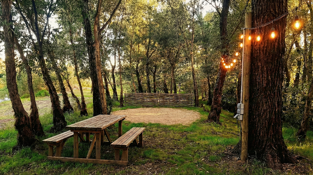 Места для кемпинга расположены в лесном массиве на берегу реки и между соседними местами расстояние не менее 20 метров.