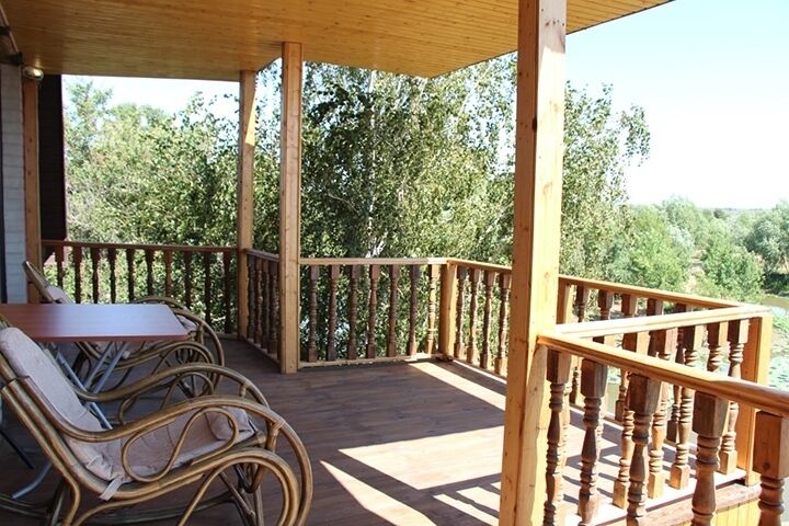 - балкон с видом на реку,