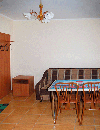Номер рассчитан для комфортного проживания трех человек на основных местах и одного человека на дополнительном месте(диван).