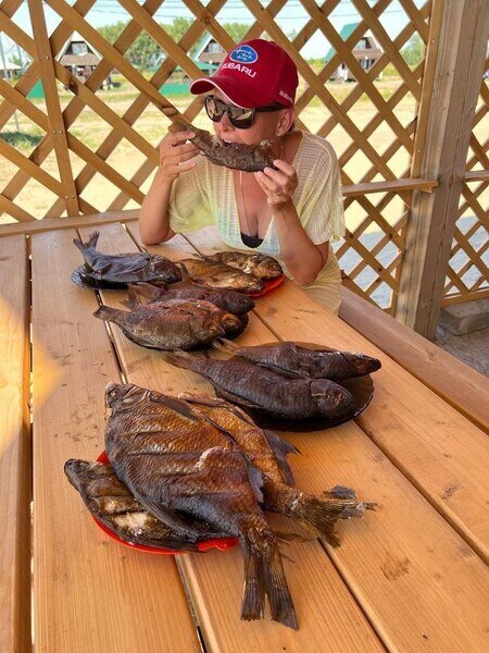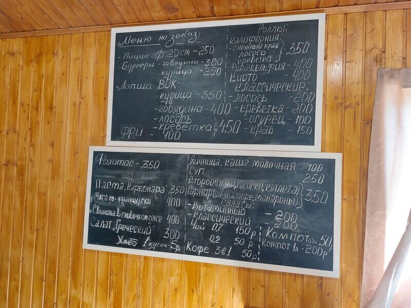 Для гурманов рыбная поляна: пельмени, котлеты, уха, заливное. На месте приготовим Ваш трофей из расчета сырого веса - 500 ₽ за 1 кг. КафеОписаниеКомплексное питание: - Взрослые — 1000 ₽.