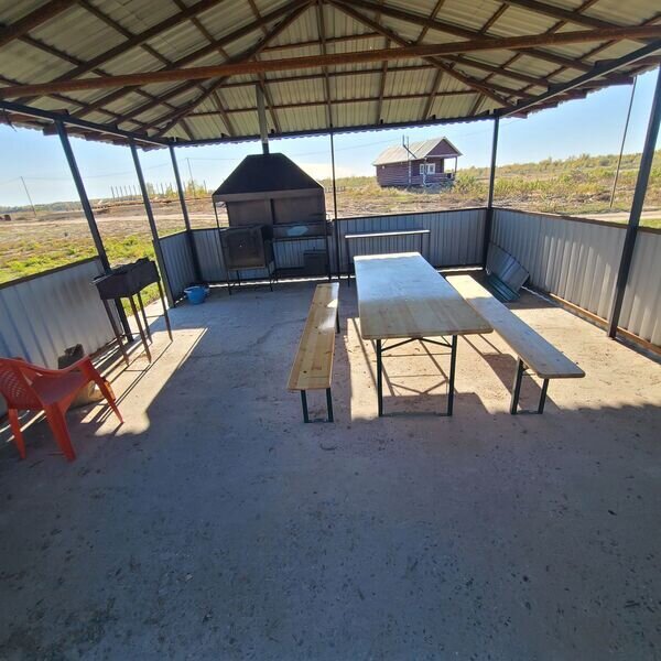 На улице летняя кухня, со всем необходимым, для самостоятельного приготовления пищи и комфортного отдыха.