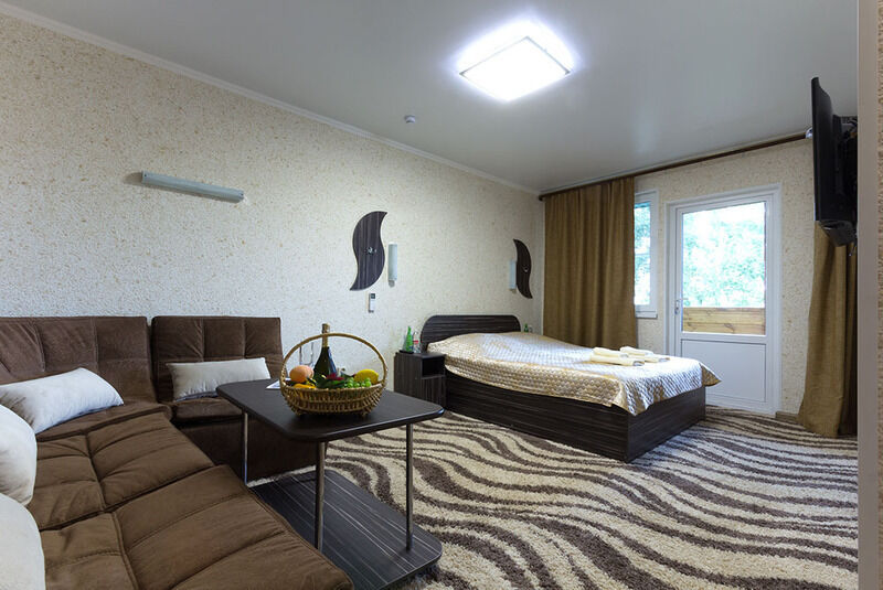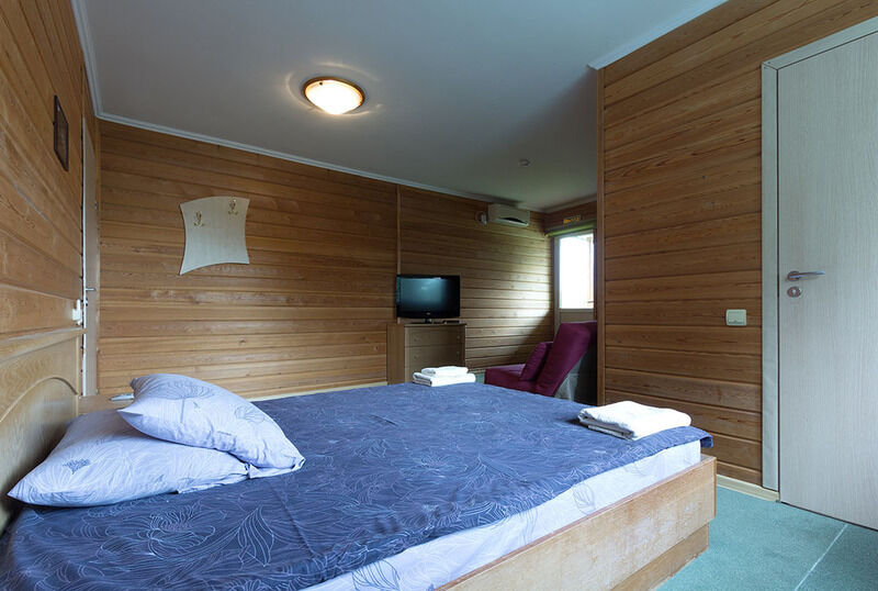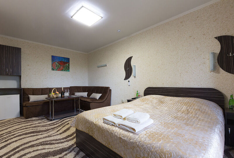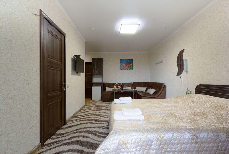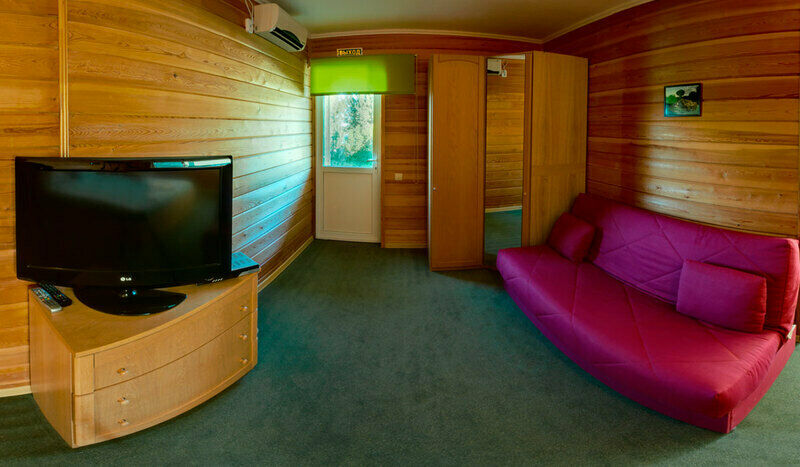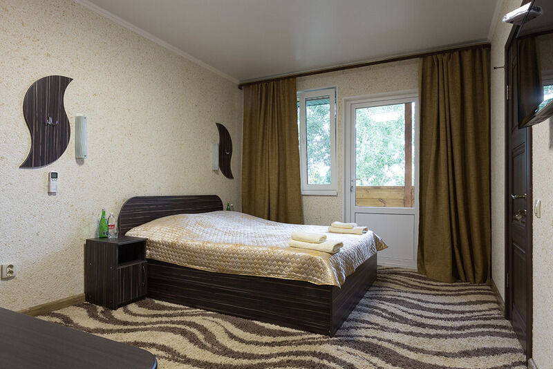 В номере: Двуспальная кровать, набор мебели, сплит-система, евро-сантехника, унитаз, биде, душевая кабина, холодная и горячая вода, ЖК-панель.