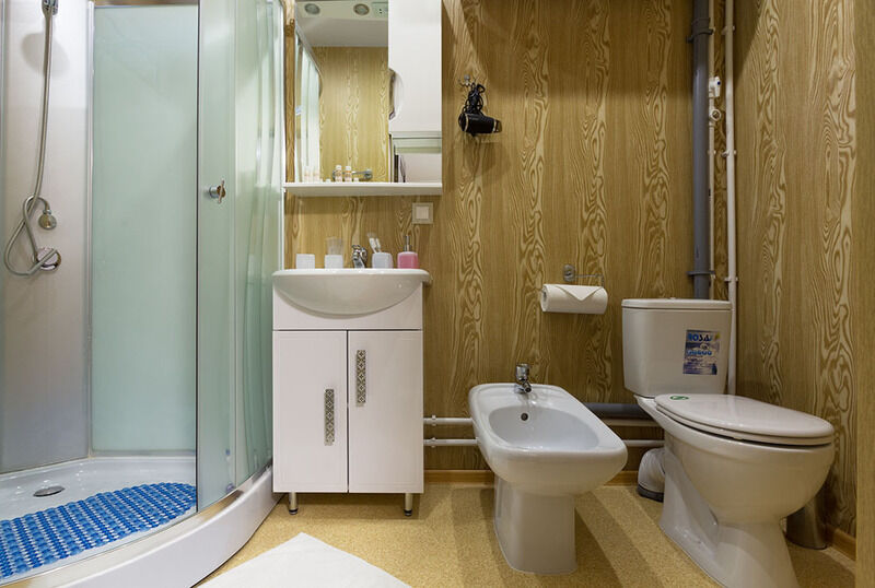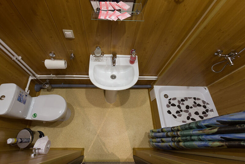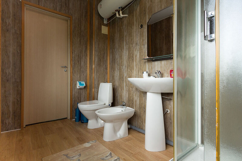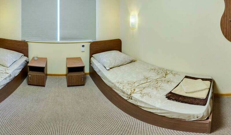 Номер оснащен новой мебелью, сплит-системами, телевизорами со спутниковым ТВ, и конечно же, в каждом номере отдельно оборудованный санузел с душевыми кабинами.