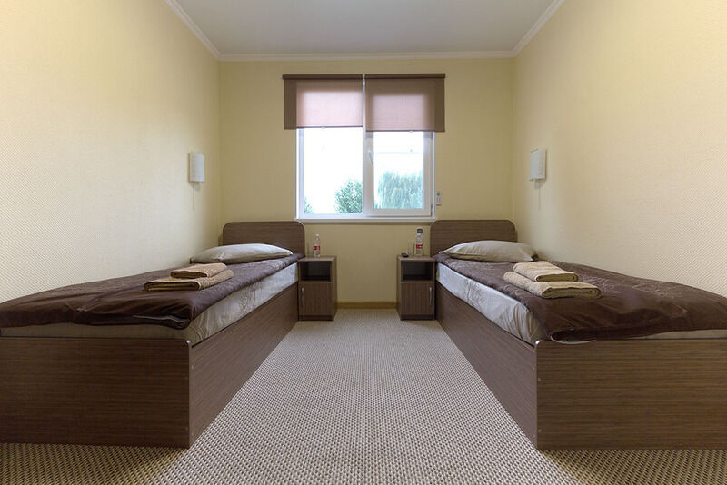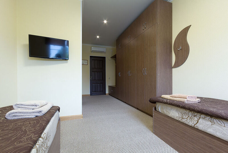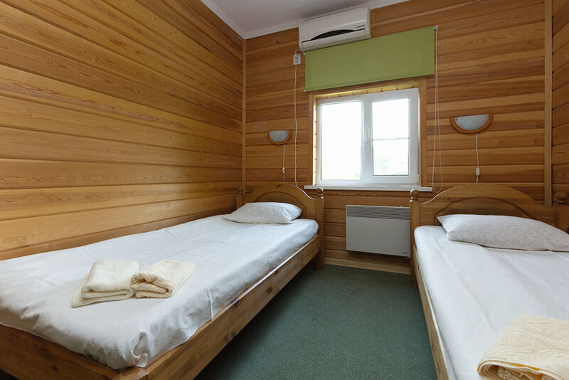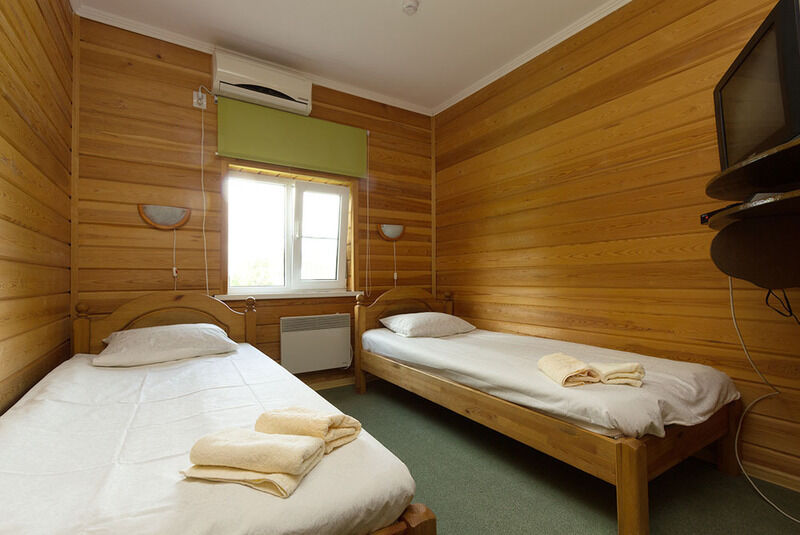 Две односпальные кровати, мебель, сплит-система, обогреватель,туалет, душевая кабина, холодная и горячая вода ,ЖК-панель в 8-ми номерах «Стандарт»
