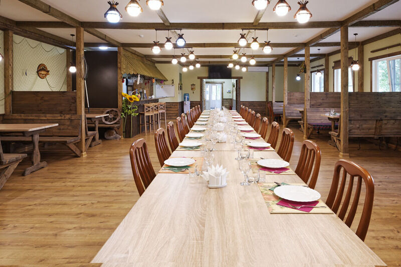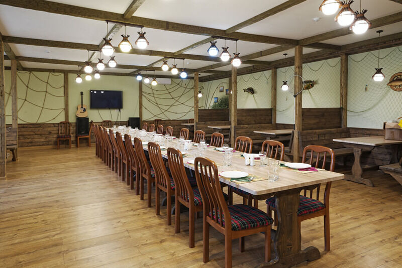 Ресторан базы — это идеальное место для проведения семейных торжеств, юбилеев, корпоративных вечеров, деловых встреч. Вы можете устроить у нас любое торжество — вплоть до пышной свадьбы. Для корпоративных клиентов и групп от 15 человек-цены договорные, индивидуальное составление меню, скидки на проживание. Организация шоу, развлекательных программ, тематических вечеров, дискотек, конкурсов — по предварительной договорённости.